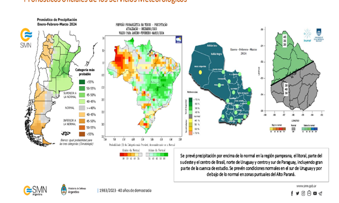 La evolución de índices climáticos publicados por organismos especializados de referencia, vinculados con la previsión del fenómeno caracterizado como “El Niño”, hace prever con un grado de probabilidad alto, que durante el periodo enero y marzo 2024 podrían verificarse eventos hidrológicos asociados a situaciones de aguas altas.