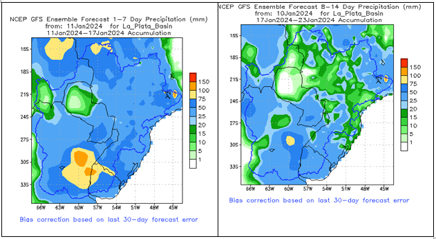 El pronóstico Hidrometeorológico del Centro Climático de referencia indica una tendencia semanal de leve significancia hidrológica en la cuenca de interés para la CHY con dispersión geográfica según sea la fuente consultada. (Ver gráfico Nro. 1).