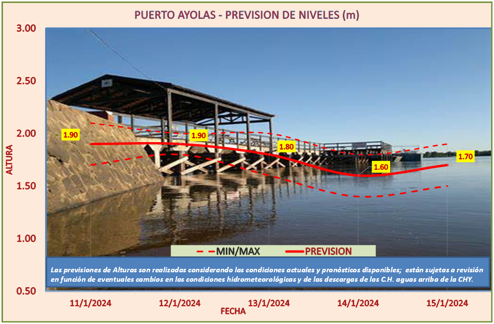 Las previsiones de Alturas son realizadas considerando las condiciones actuales y pronósticos disponibles y están sujetas a revisión en función de eventuales cambios en las condiciones hidrometeorológicas y de las descargas de las C.H. aguas arriba de la CHY.