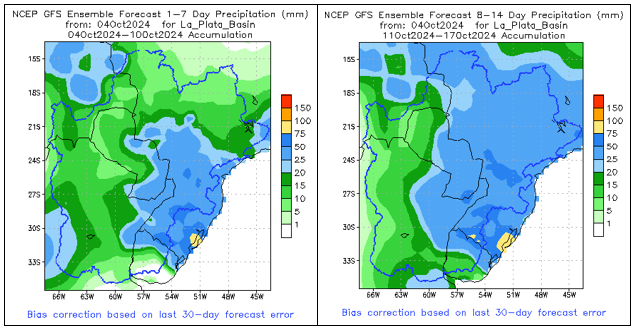El pronóstico Hidrometeorológico del Centro Climático de referencia indica una tendencia semanal de poca significancia hidrológica en la cuenca de interés para la CHY con dispersión geográfica según sea la fuente consultada. (Ver gráfico Nro. 1).