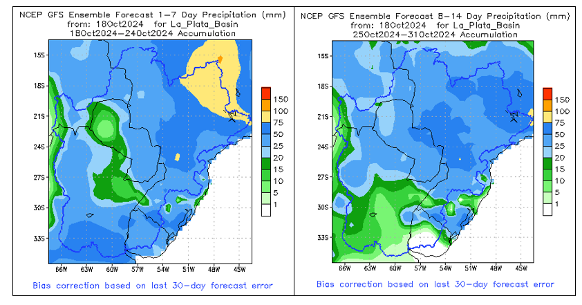 El pronóstico Hidrometeorológico del Centro Climático de referencia indica una tendencia semanal de leve significancia hidrológica en la cuenca de interés para la CHY con dispersión geográfica según sea la fuente consultada. (Ver gráfico Nro. 1).