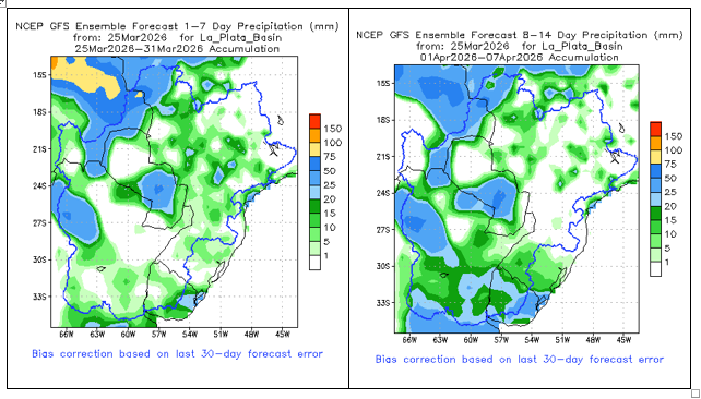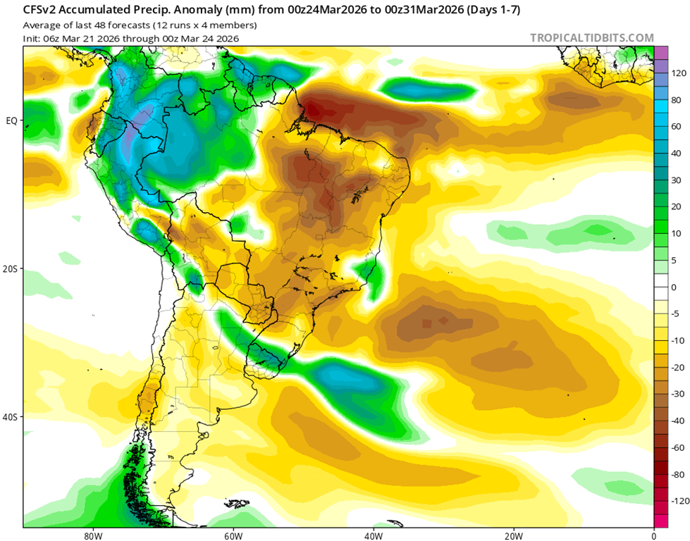 • El índice del Modo Anular del Sur (SAM, por sus siglas en inglés) se mantiene neutral al 14 de marzo de 2026. Se prevé que permanezca mayoritariamente neutral durante las próximas dos semanas.