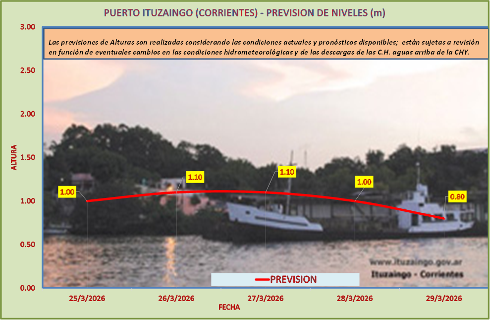 Las previsiones de Alturas son realizadas considerando las condiciones actuales y pronósticos disponibles y están sujetas a revisión en función de eventuales cambios en las condiciones hidrometeorológicas y de las descargas de las C.H. aguas arriba de la CHY.