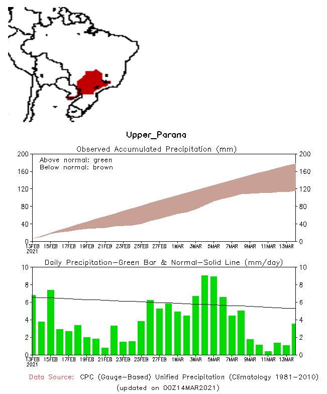 El pronóstico Hidrometeorológico del Centro Climático de referencia indica una tendencia semanal de poca significancia hidrológica en la cuenca de interés para la CHY con dispersión geográfica según sea la fuente consultada. (Ver gráfico Nro. 1).