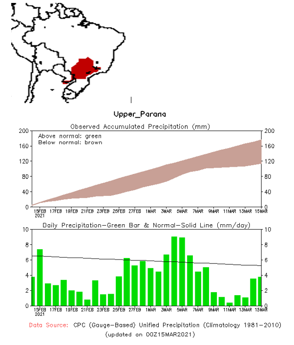 El pronóstico Hidrometeorológico del Centro Climático de referencia indica una tendencia semanal de poca significancia hidrológica en la cuenca de interés para la CHY con dispersión geográfica según sea la fuente consultada. (Ver gráfico Nro. 1).