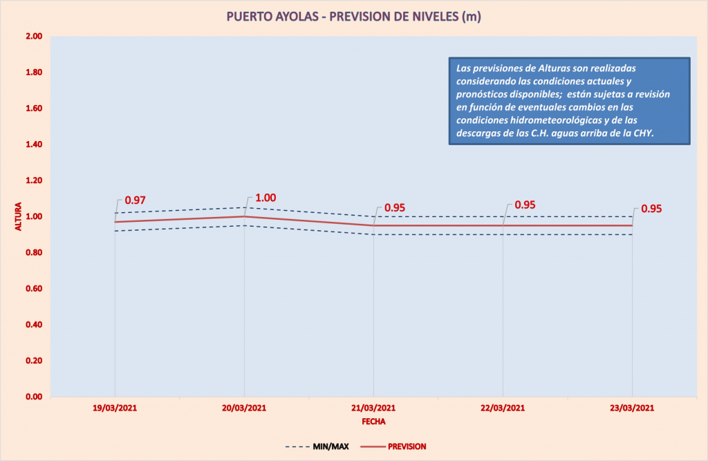 Las previsiones de Alturas son realizadas considerando las condiciones actuales y pronósticos disponibles y están sujetas a revisión en función de eventuales cambios en las condiciones hidrometeorológicas y de las descargas de las C.H. aguas arriba de la CHY.