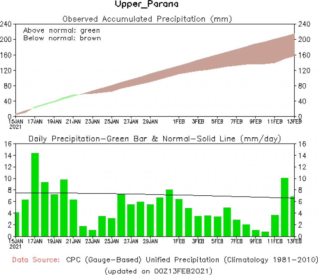 El pronóstico Hidrometeorológico del Centro Climático de referencia indica una tendencia semanal de poca significancia hidrológica en la cuenca de interés para la CHY con dispersión geográfica según sea la fuente consultada. (Ver gráfico Nro. 1).