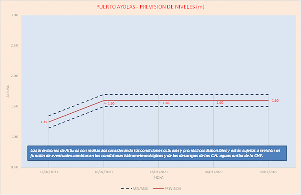 Las previsiones de Alturas son realizadas considerando las condiciones actuales y pronósticos disponibles y están sujetas a revisión en función de eventuales cambios en las condiciones hidrometeorológicas y de las descargas de las C.H. aguas arriba de la CHY.
