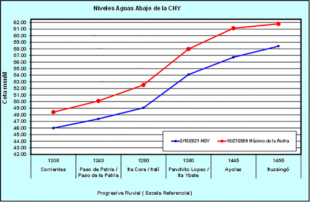 REFERENCIA: a modo de información – valores que originan riesgos de inundación en la zona de Ayolas.