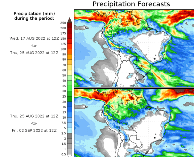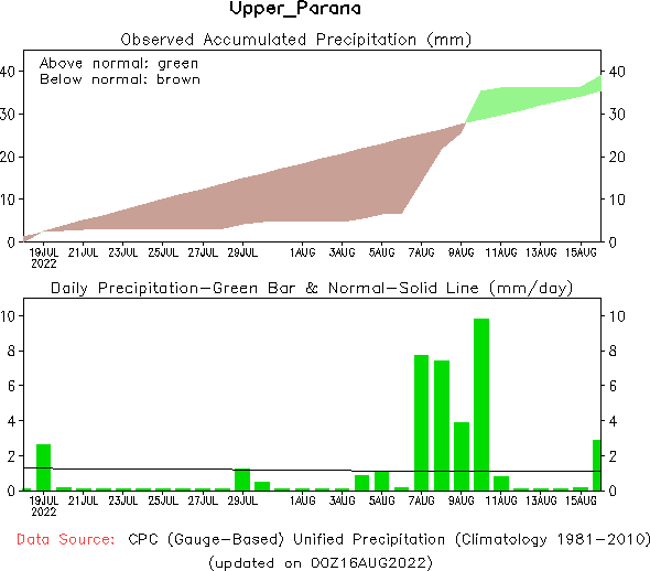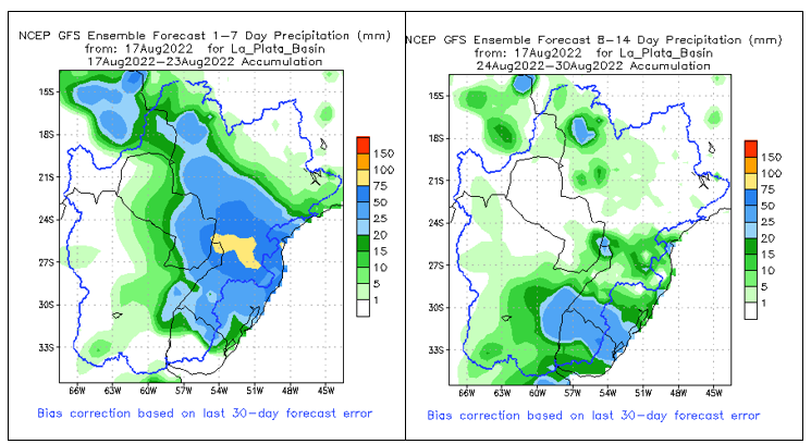 El pronóstico Hidrometeorológico del Centro Climático de referencia indica una tendencia semanal de significancia hidrológica en la cuenca de interés para la CHY con dispersión geográfica según sea la fuente consultada. (Ver gráfico Nro. 1).