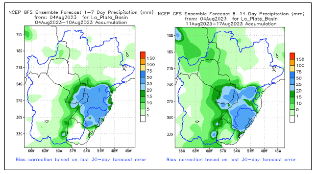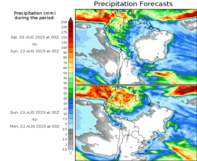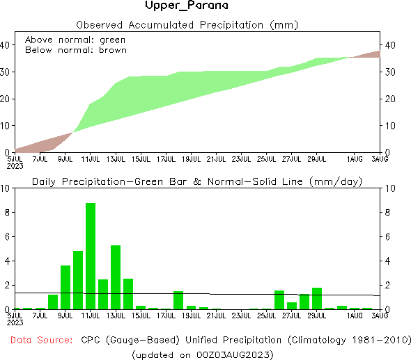 El pronóstico Hidrometeorológico del Centro Climático de referencia indica una tendencia semanal de poca significancia hidrológica en la cuenca de interés para la CHY con dispersión geográfica según sea la fuente consultada. (Ver gráfico Nro. 1).