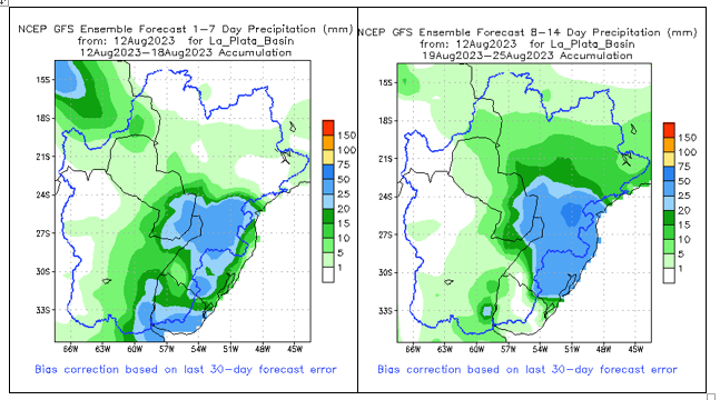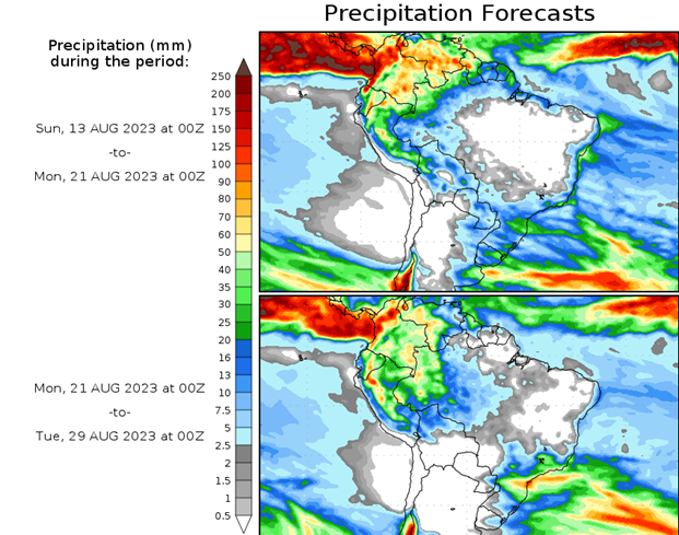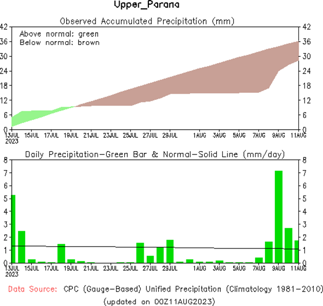 El pronóstico Hidrometeorológico del Centro Climático de referencia indica una tendencia semanal de poca significancia hidrológica en la cuenca de interés para la CHY con dispersión geográfica según sea la fuente consultada. (Ver gráfico Nro. 1).
