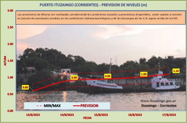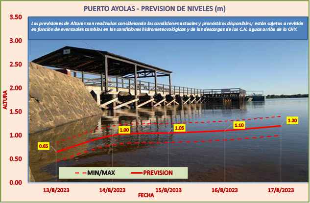 Las previsiones de Alturas son realizadas considerando las condiciones actuales y pronósticos disponibles y están sujetas a revisión en función de eventuales cambios en las condiciones hidrometeorológicas y de las descargas de las C.H. aguas arriba de la CHY.