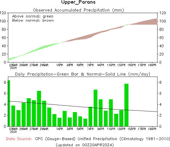 El pronóstico Hidrometeorológico del Centro Climático de referencia indica una tendencia semanal de leve significancia hidrológica en la cuenca de interés para la CHY con dispersión geográfica según sea la fuente consultada. (Ver gráfico Nro. 1).