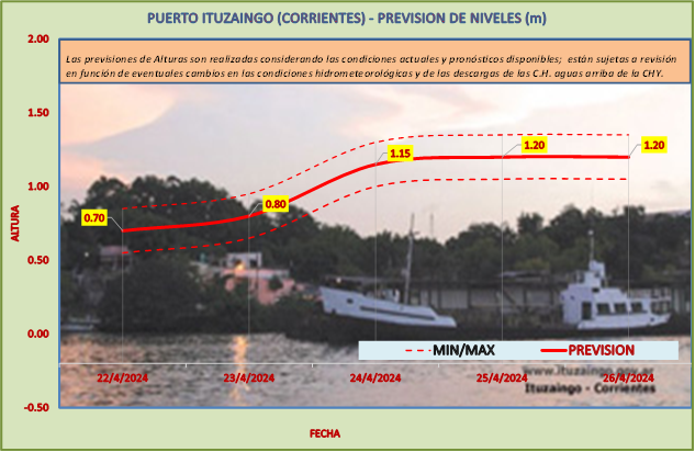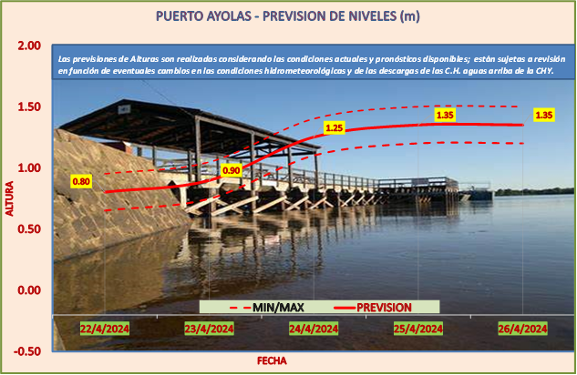 Las previsiones de Alturas son realizadas considerando las condiciones actuales y pronósticos disponibles y están sujetas a revisión en función de eventuales cambios en las condiciones hidrometeorológicas y de las descargas de las C.H. aguas arriba de la CHY.