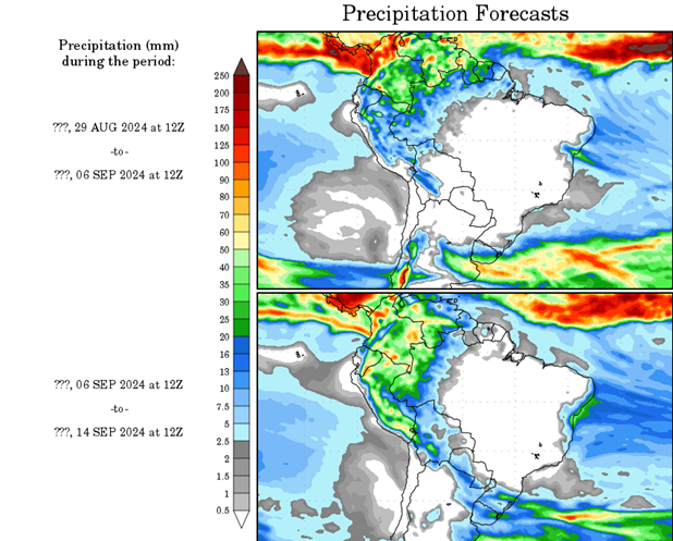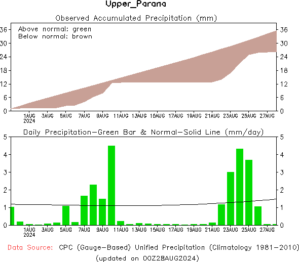 El pronóstico Hidrometeorológico del Centro Climático de referencia indica una tendencia semanal de poca significancia hidrológica en la cuenca de interés para la CHY con dispersión geográfica según sea la fuente consultada. (Ver gráfico Nro. 1).