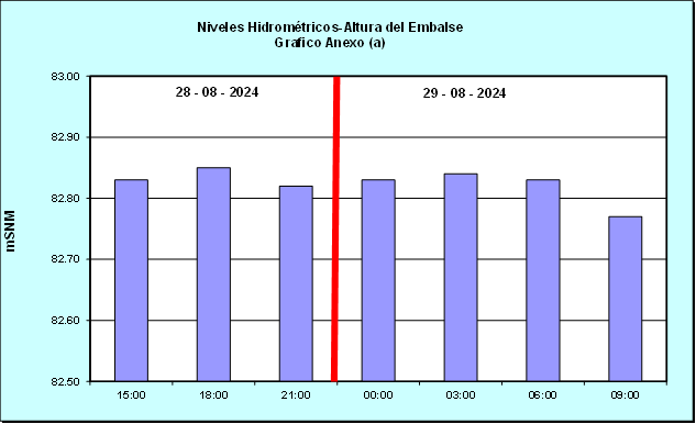 Nivel de Ayer (06:00 hs) = 82.88 mSNM Nivel de Hoy (06:00 hs) = 82.85 mSNM