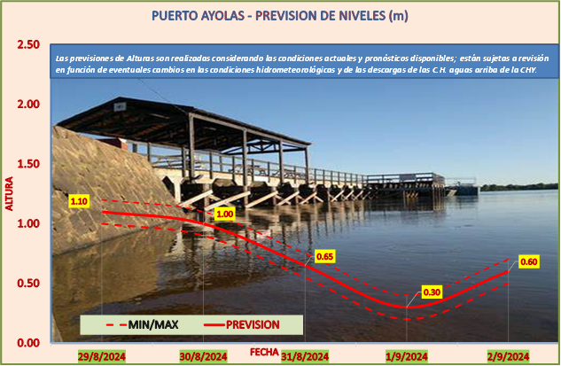 Las previsiones de Alturas son realizadas considerando las condiciones actuales y pronósticos disponibles y están sujetas a revisión en función de eventuales cambios en las condiciones hidrometeorológicas y de las descargas de las C.H. aguas arriba de la CHY.