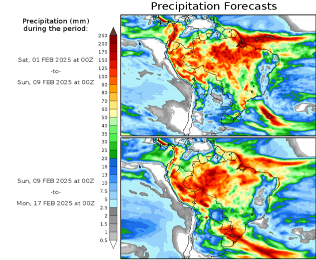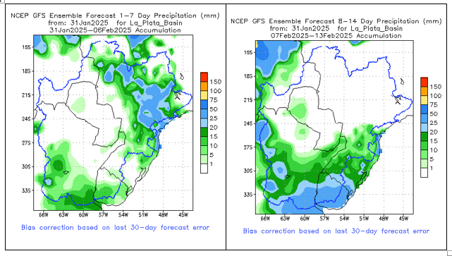 El pronóstico Hidrometeorológico del Centro Climático de referencia indica una tendencia semanal de poca significancia hidrológica en la cuenca de interés para la CHY con dispersión geográfica según sea la fuente consultada. (Ver gráfico Nro. 1).