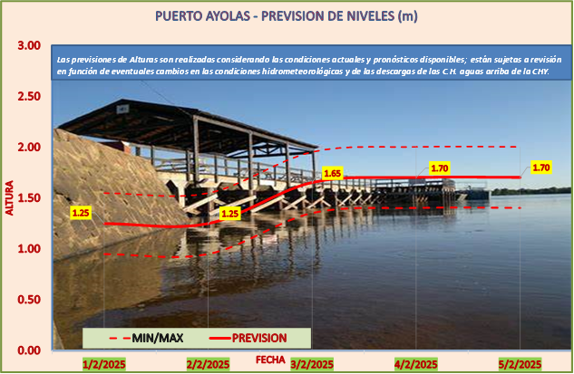Las previsiones de Alturas son realizadas considerando las condiciones actuales y pronósticos disponibles y están sujetas a revisión en función de eventuales cambios en las condiciones hidrometeorológicas y de las descargas de las C.H. aguas arriba de la CHY.