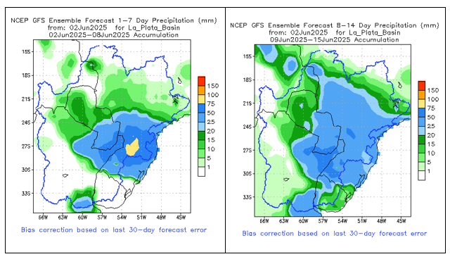 El pronóstico Hidrometeorológico del Centro Climático de referencia indica una tendencia semanal de poca significancia hidrológica en la cuenca de interés para la CHY con dispersión geográfica según sea la fuente consultada. (Ver gráfico Nro. 1).