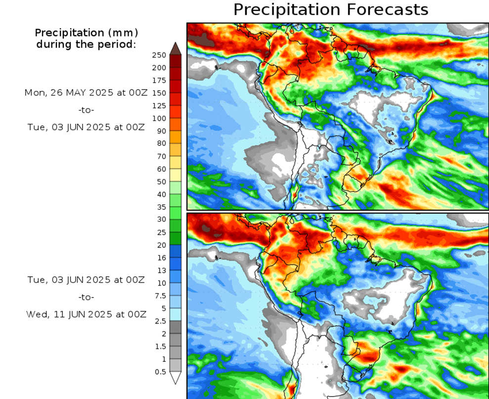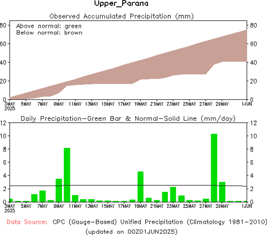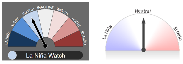 El fenómeno de El Niño-Oscilación del Sur (ENOS) es neutro. El último valor de Niño 3.4 para la semana que finalizó el 18 de mayo fue de -0,01 °C. Los valores neutros de ENOS se encuentran entre -0,8 °C y +0,8 °C.