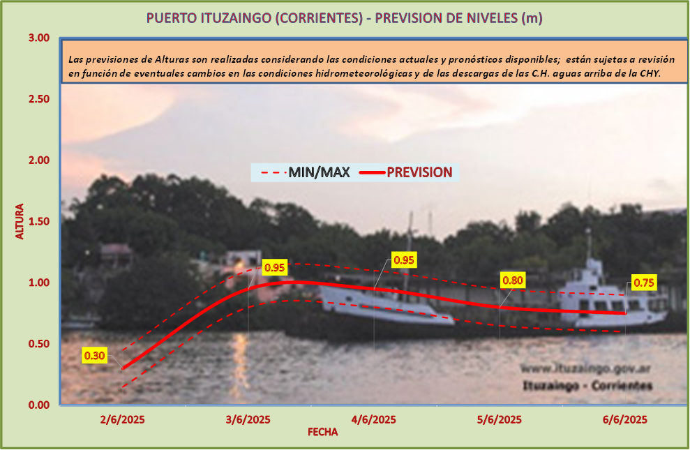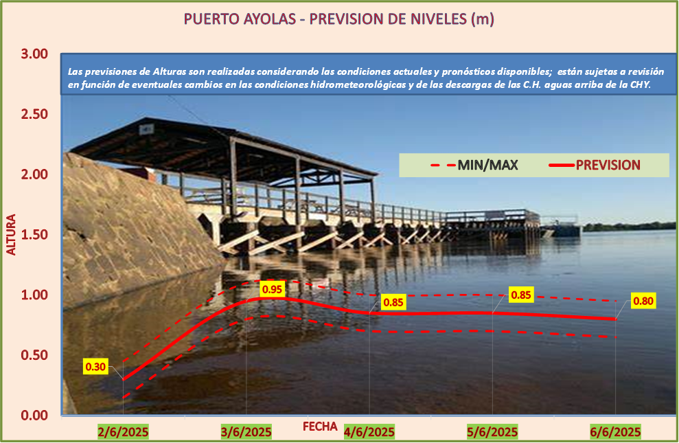 Las previsiones de Alturas son realizadas considerando las condiciones actuales y pronósticos disponibles y están sujetas a revisión en función de eventuales cambios en las condiciones hidrometeorológicas y de las descargas de las C.H. aguas arriba de la CHY.