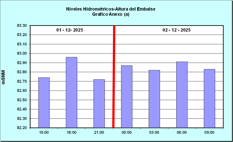 Nivel de Ayer (06:00 hs) = 82.87 mSNM Nivel de Hoy (06:00 hs) = 82.85 mSNM
