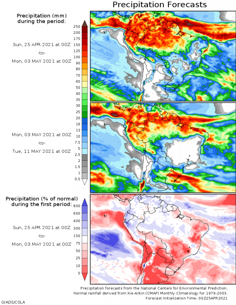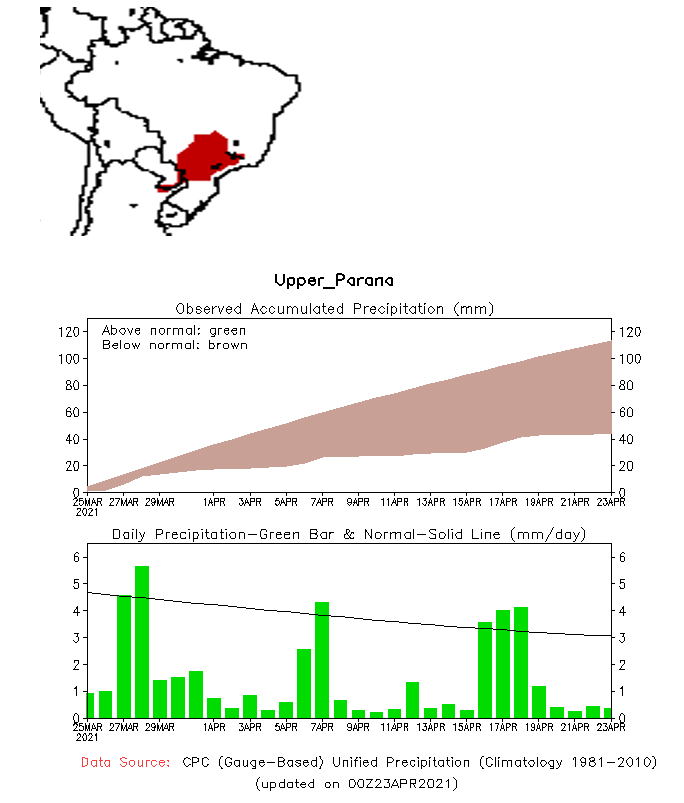El pronóstico Hidrometeorológico del Centro Climático de referencia indica una tendencia semanal de poca significancia hidrológica en la cuenca de interés para la CHY con dispersión geográfica según sea la fuente consultada. (Ver gráfico Nro. 1).