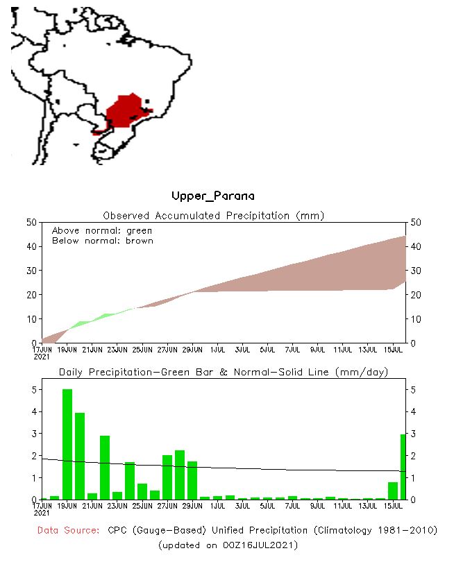 Los embalses de acumulación del Brasil que se ubican en la cuenca alta del río Paraná, aguas arriba de la Central Hidroeléctrica de Yacyretá, se encuentran con volúmenes útiles y niveles muy por debajo de lo normal debido a las escasas precipitaciones registradas.