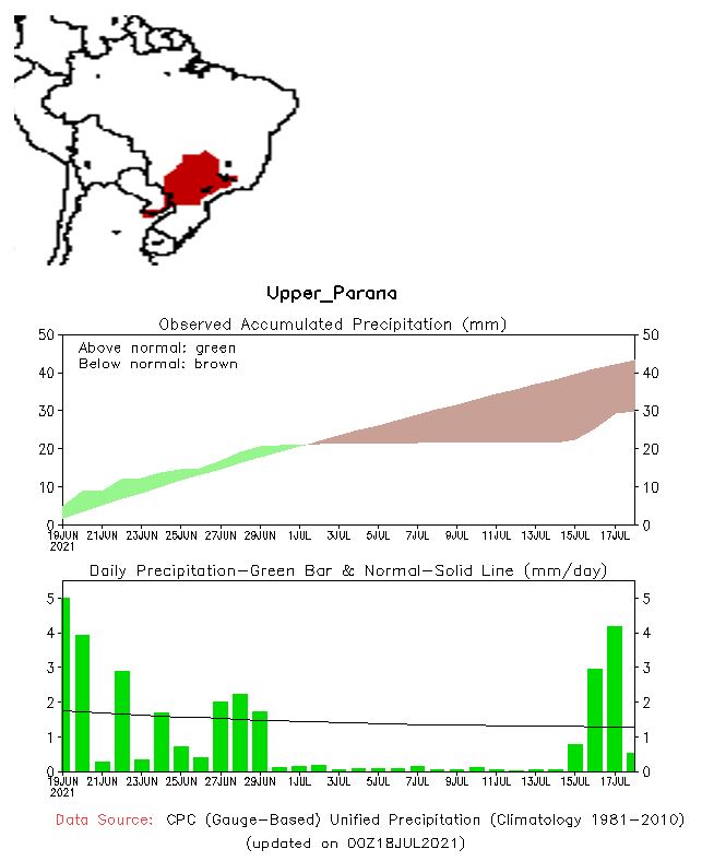 Los embalses de acumulación del Brasil que se ubican en la cuenca alta del río Paraná, aguas arriba de la Central Hidroeléctrica de Yacyretá, se encuentran con volúmenes útiles y niveles muy por debajo de lo normal debido a las escasas precipitaciones registradas.