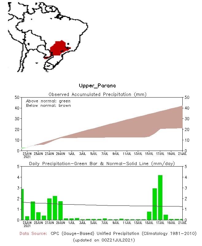 Los embalses de acumulación del Brasil que se ubican en la cuenca alta del río Paraná, aguas arriba de la Central Hidroeléctrica de Yacyretá, se encuentran con volúmenes útiles y niveles muy por debajo de lo normal debido a las escasas precipitaciones registradas.