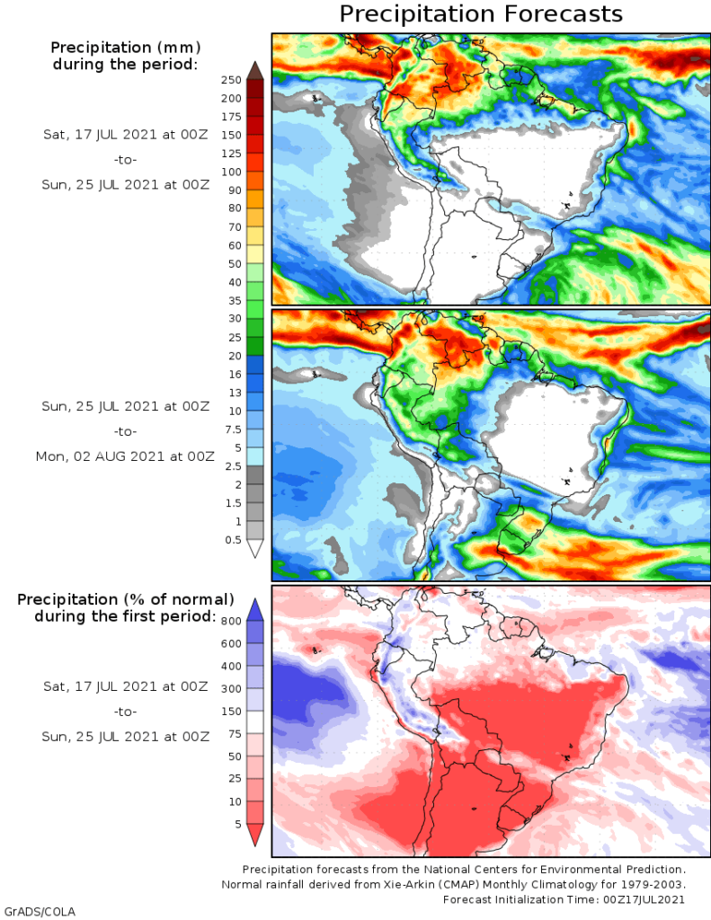 El pronóstico Hidrometeorológico del Centro Climático de referencia indica una tendencia semanal de poca significancia hidrológica en la cuenca de interés para la CHY con dispersión geográfica según sea la fuente consultada. (Ver gráfico Nro. 1).