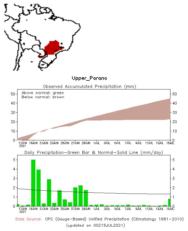 Los embalses de acumulación del Brasil que se ubican en la cuenca alta del río Paraná, aguas arriba de la Central Hidroeléctrica de Yacyretá, se encuentran con volúmenes útiles y niveles muy por debajo de lo normal debido a las escasas precipitaciones registradas.