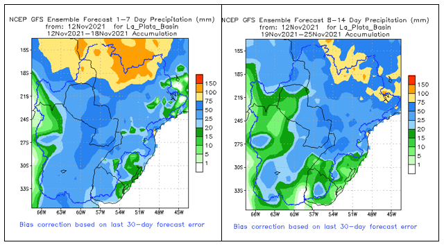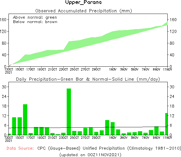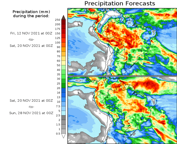 El pronóstico Hidrometeorológico del Centro Climático de referencia indica una tendencia semanal de poca significancia hidrológica en la cuenca de interés para la CHY con dispersión geográfica según sea la fuente consultada. (Ver gráfico Nro. 1).