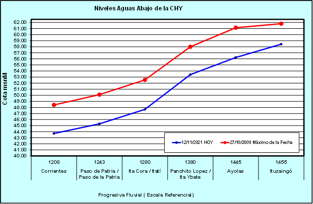 REFERENCIA: a modo de información – valores que originan riesgos de inundación en la zona de Ayolas.