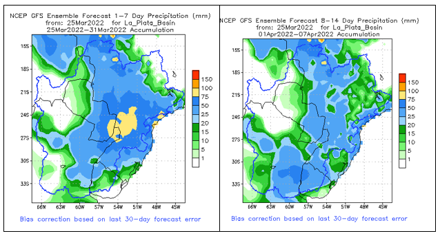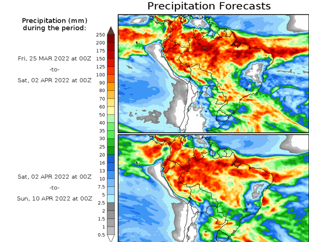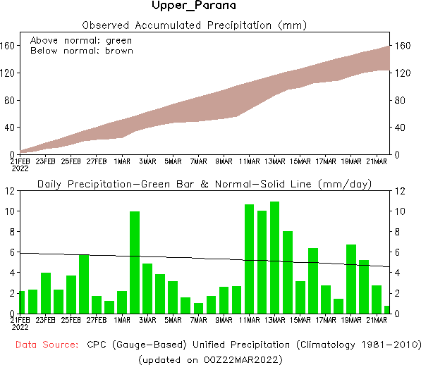 El pronóstico Hidrometeorológico del Centro Climático de referencia indica una tendencia semanal de poca significancia hidrológica en la cuenca de interés para la CHY con dispersión geográfica según sea la fuente consultada. (Ver gráfico Nro. 1).