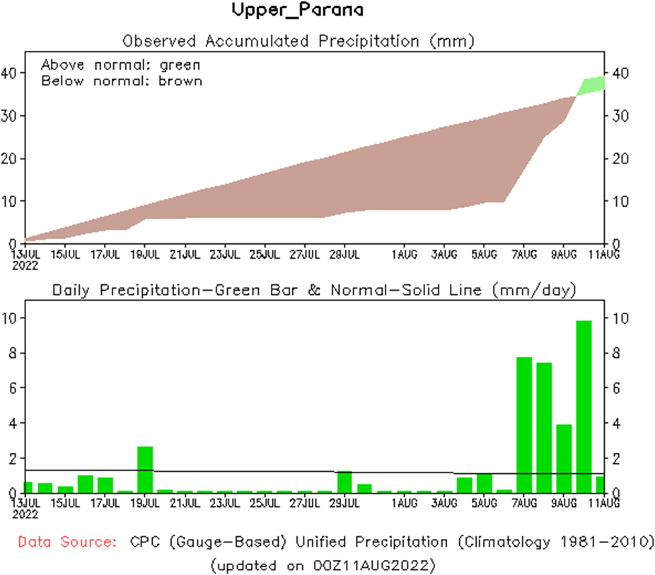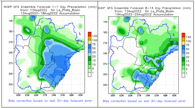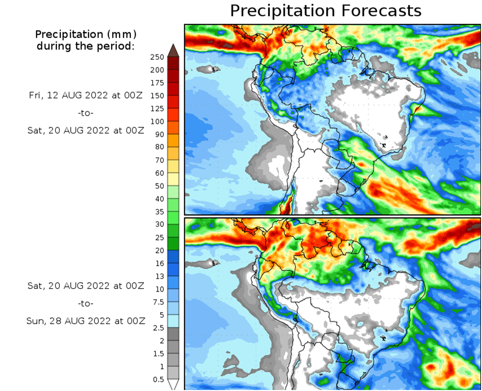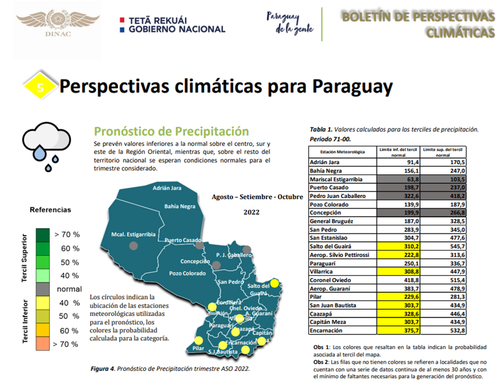 El pronóstico Hidrometeorológico del Centro Climático de referencia indica una tendencia semanal de poca significancia hidrológica en la cuenca de interés para la CHY con dispersión geográfica según sea la fuente consultada. (Ver gráfico Nro. 1).
