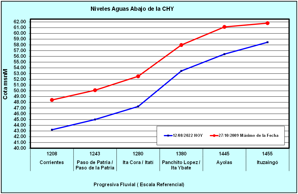 REFERENCIA: a modo de información – valores que originan riesgos de inundación en la zona de Ayolas.