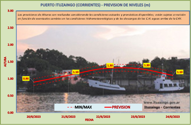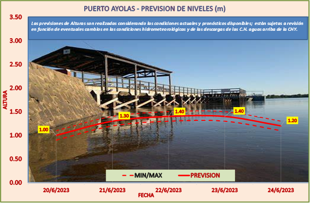 Las previsiones de Alturas son realizadas considerando las condiciones actuales y pronósticos disponibles y están sujetas a revisión en función de eventuales cambios en las condiciones hidrometeorológicas y de las descargas de las C.H. aguas arriba de la CHY.