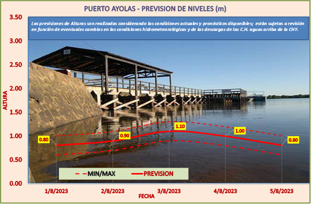 Las previsiones de Alturas son realizadas considerando las condiciones actuales y pronósticos disponibles y están sujetas a revisión en función de eventuales cambios en las condiciones hidrometeorológicas y de las descargas de las C.H. aguas arriba de la CHY.