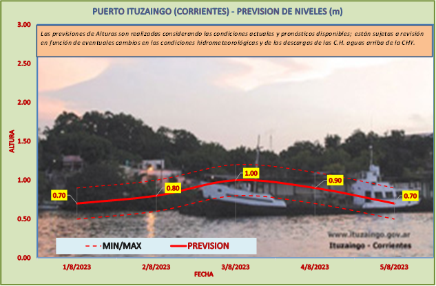 En el Puerto de Ayolas se registró una altura de 0.80 m a las 02:00 hs. mientras que se espera que los niveles acompañen la tendencia de los caudales.