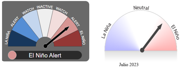 La Perspectiva ENSO está en Alerta El Niño. Cuando los criterios de Alerta de El Niño se han cumplido en el pasado, un evento de El Niño se ha desarrollado alrededor del 70% del tiempo.