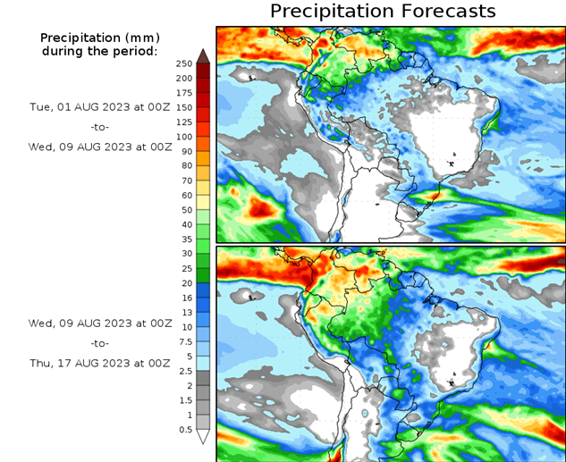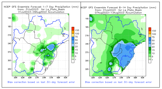 El pronóstico Hidrometeorológico del Centro Climático de referencia indica una tendencia semanal de poca significancia hidrológica en la cuenca de interés para la CHY con dispersión geográfica según sea la fuente consultada. (Ver gráfico Nro. 1).