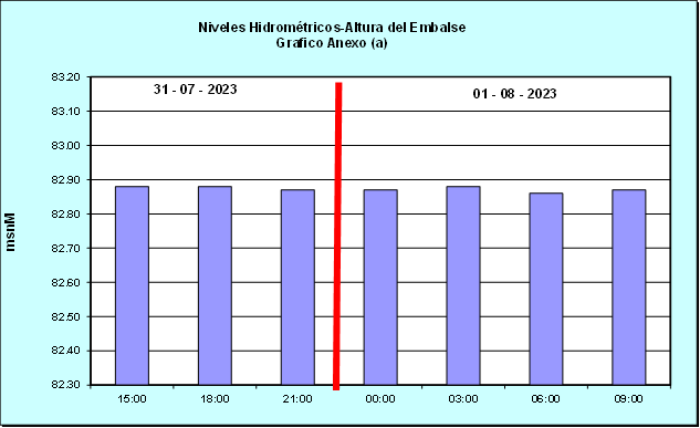Nivel de Ayer (06:00 hs) = 82.89 mSNM Nivel de Hoy (06:00 hs) = 82.86 mSNM