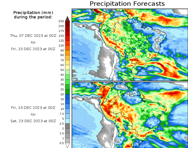 El pronóstico Hidrometeorológico del Centro Climático de referencia indica una tendencia semanal de significancia hidrológica en la cuenca de interés para la CHY con dispersión geográfica según sea la fuente consultada. (Ver gráfico Nro. 1).