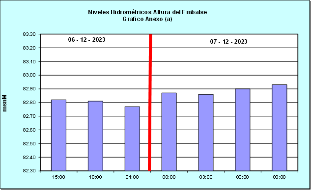 Nivel de Ayer (06:00 hs) = 82.85 mSNM Nivel de Hoy (06:00 hs) = 82.86 mSNM