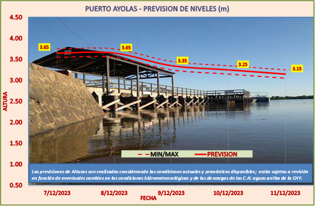 Las previsiones de Alturas son realizadas considerando las condiciones actuales y pronósticos disponibles y están sujetas a revisión en función de eventuales cambios en las condiciones hidrometeorológicas y de las descargas de las C.H. aguas arriba de la CHY.