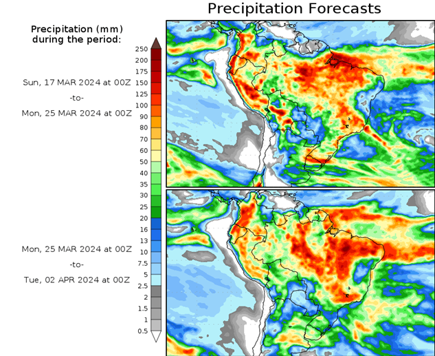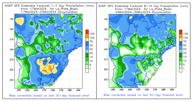 El pronóstico Hidrometeorológico del Centro Climático de referencia indica una tendencia semanal de poca significancia hidrológica en la cuenca de interés para la CHY con dispersión geográfica según sea la fuente consultada. (Ver gráfico Nro. 1).