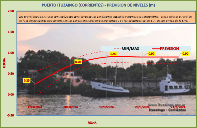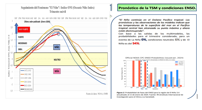 La evolución de índices climáticos publicados por organismos especializados de referencia, vinculados con la previsión del fenómeno caracterizado como “El Niño”, hace prever con un grado de probabilidad alto, que durante el periodo enero y marzo 2024 podrían verificarse eventos hidrológicos asociados a situaciones de aguas altas.
